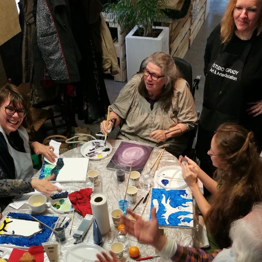 Op uitnodiging verzorgde ik een schilderworkshop voor de Pop-Up Herberg in Huizen, rond kerst. Het thema was: Wat betekent kerst voor jou? Een vrolijke, geanimeerde workshop voor jong en oud.