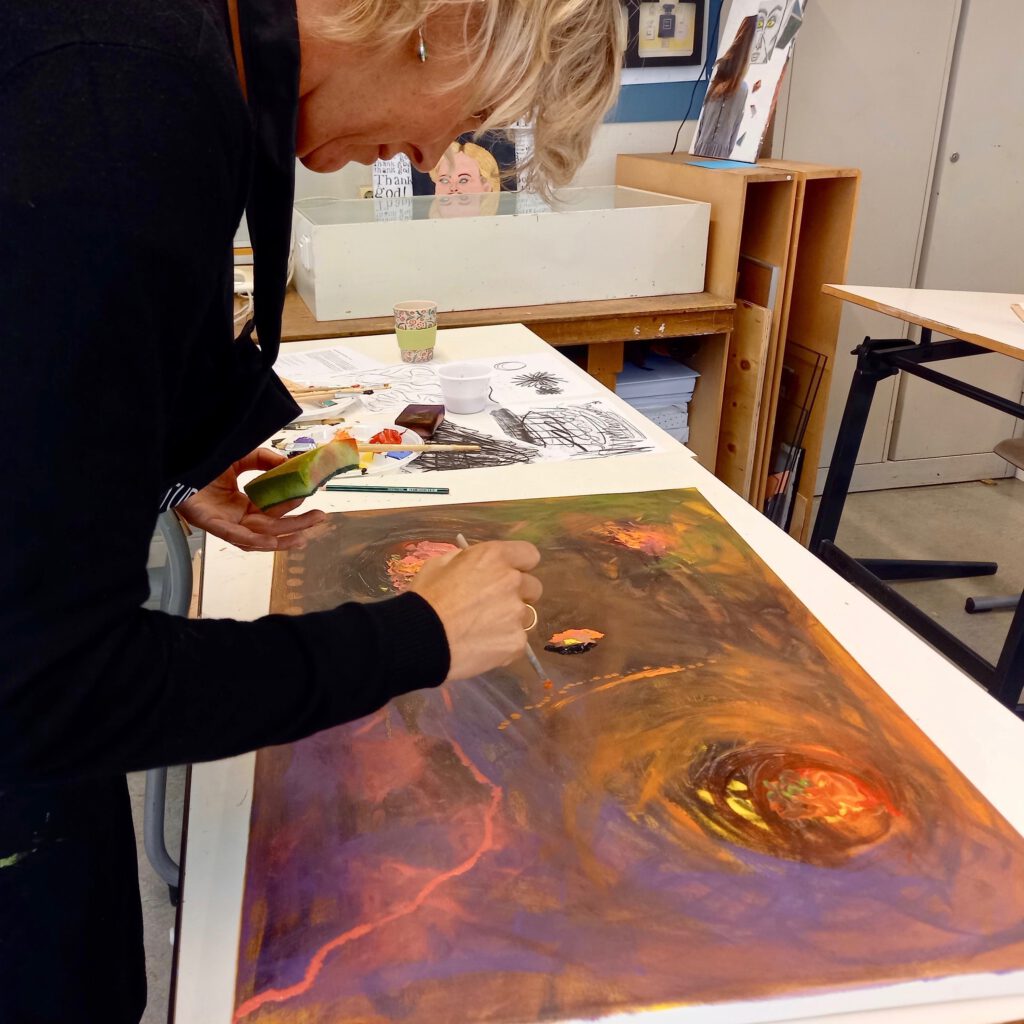 Op uitnodiging verzorgde ik een interdisciplinaire workshop voor de Womens Culture Club van de Holy Trinity Church in Utrecht. In het atelier van kunstenaar Irene van den Bos werd er geschilderd bij Psalm 91, een klein gedicht van Bert Schierbeek en muziek van Mendelssohn. Ik sloot aan bij doelstellingen van de WCC: verbinding, verdieping en creativiteit.