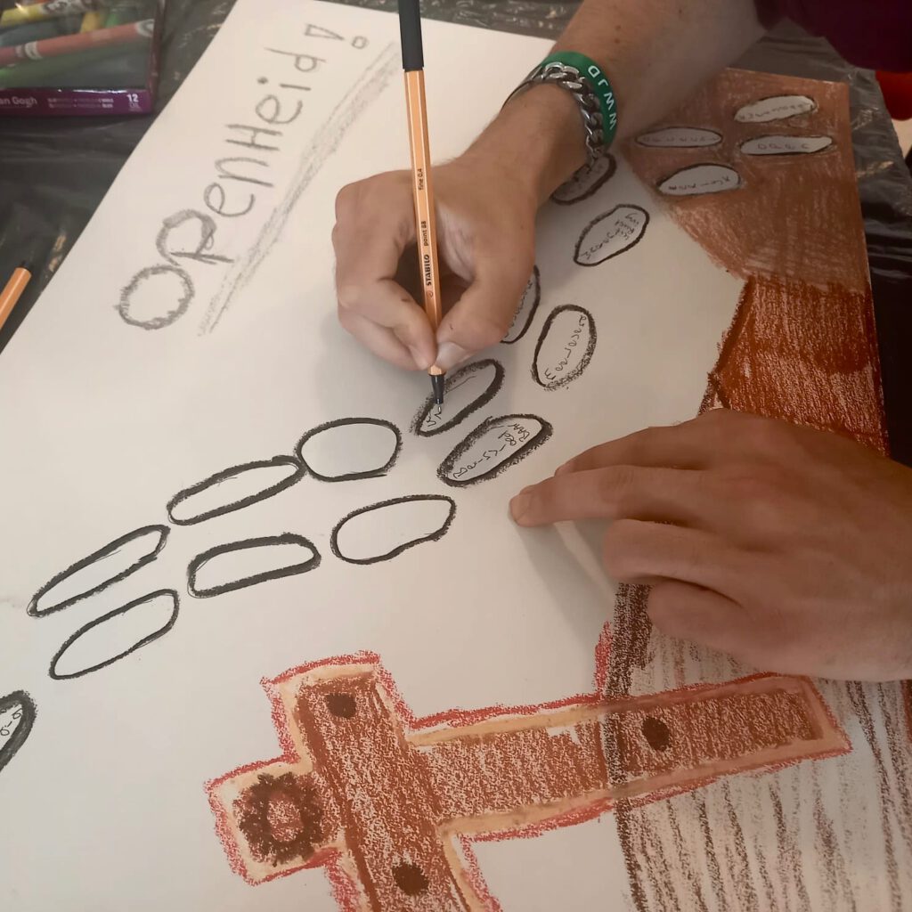 Op deze pagina verschillende impressies van schilder – en tekenworkshops voor kerken, inloophuizen, organisaties, kunstenaars en particulieren. Zo weet je wat er mogelijk is voor jou of je organisatie. Op de pagina Kunsteducatief Ontwerpen voor Kerk en Religie vind je andere projecten >>