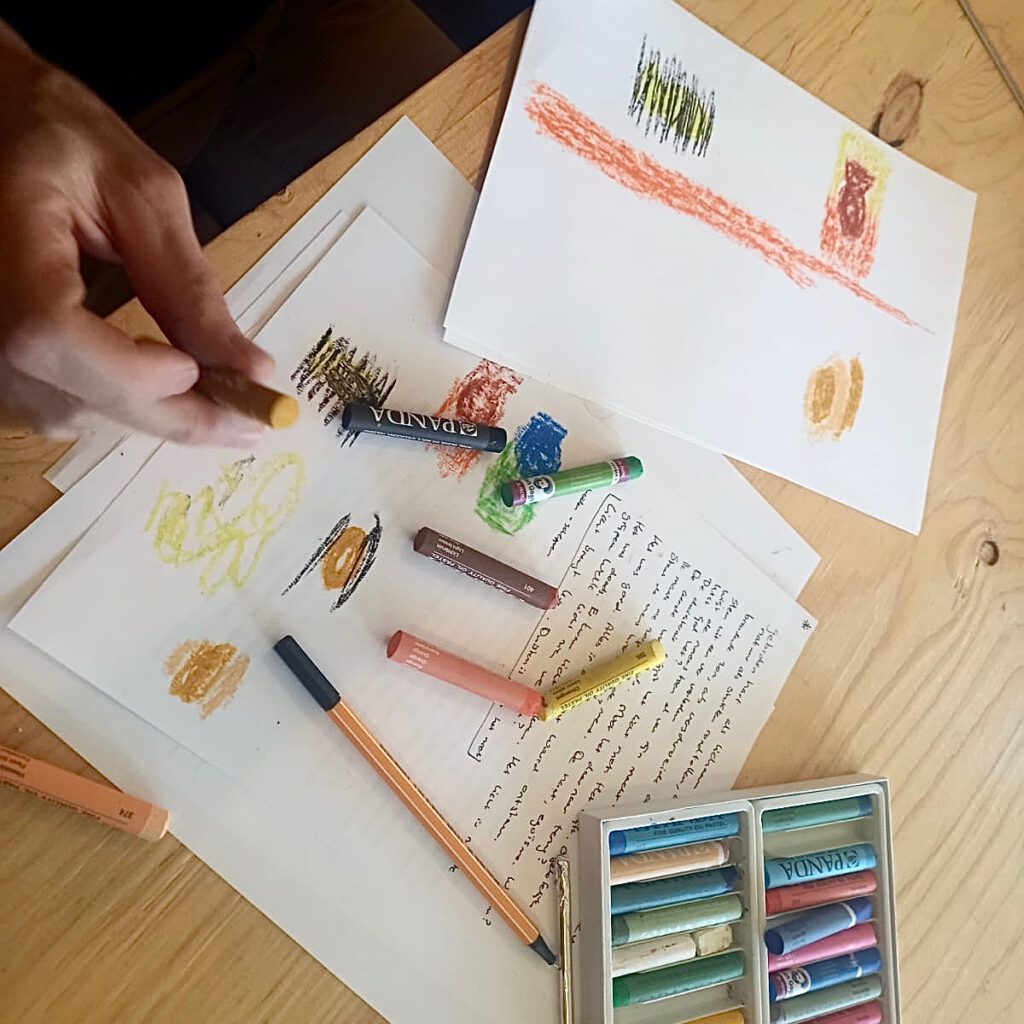 Op uitnodiging verzorgde ik een workshop voor de organisatie Geloven in Groen uit Den Haag. Aanleiding was het bezoek aan de expositie Heel de aarde in de Koningkerk in Voorburg. Er werd een tweeluik gemaakt met een tekening en een gedicht, als persoonlijke reflectie op schepping en klimaat. Inspiratiebronnen waren de expositie, Bijbeltekst uit Genesis 1 en Johannes 1 en muziek van Vivaldi,
