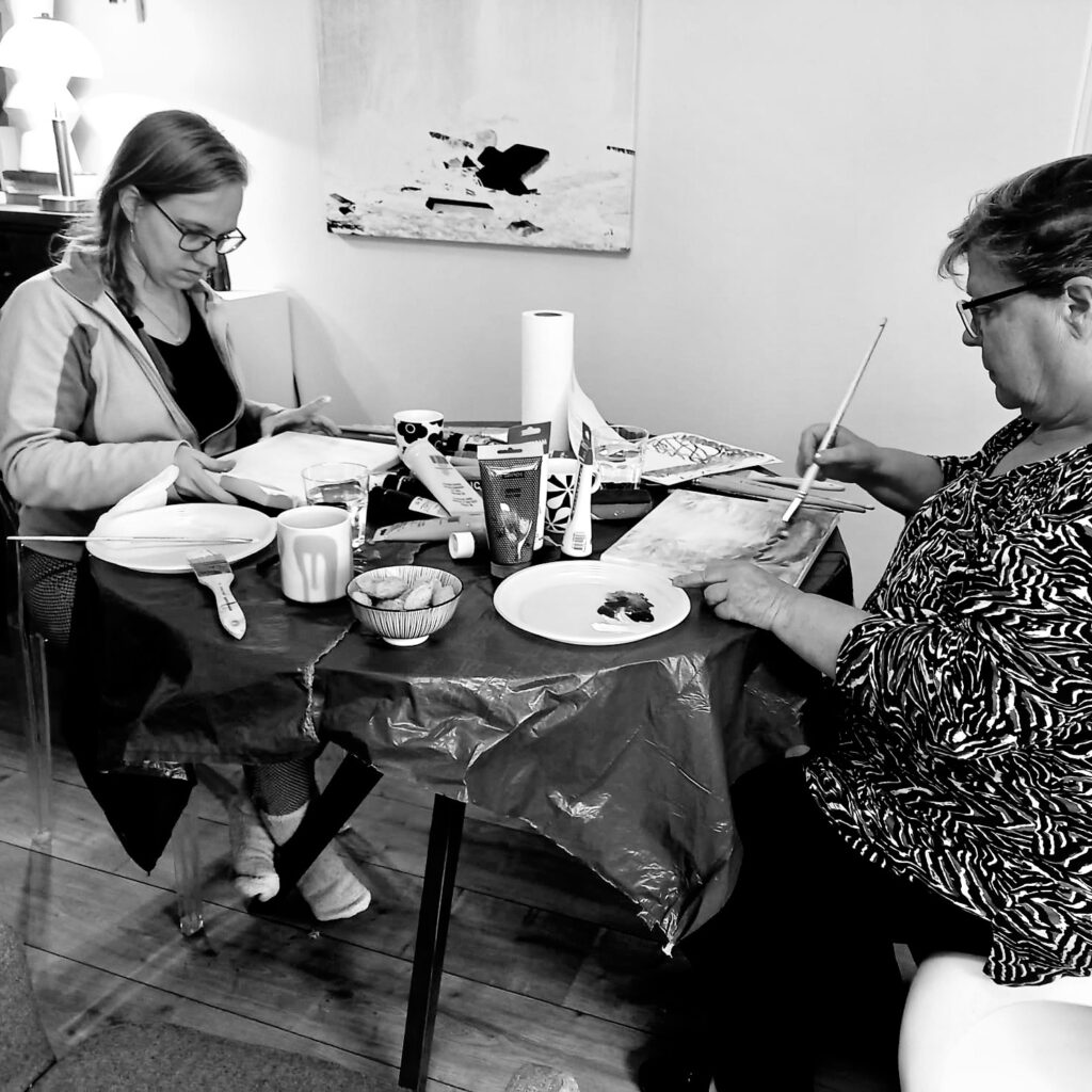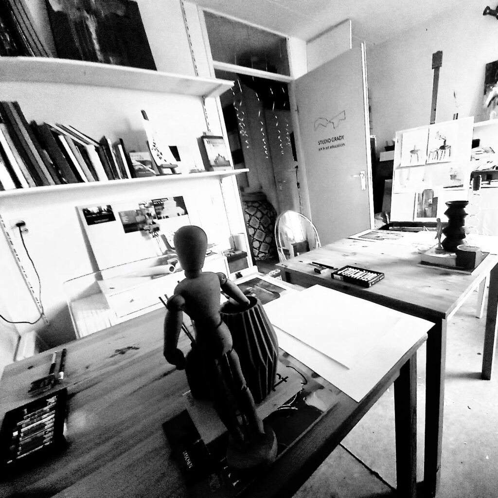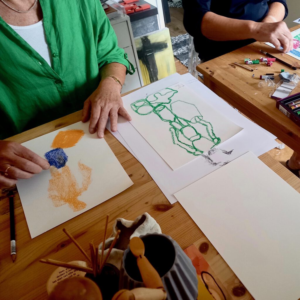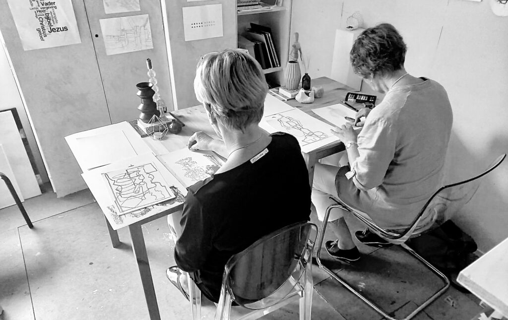 In mijn compacte atelier verzorg ik kleinschalige lessen en workshops. Je kunt met z’n tweeën komen en ik noem dit dan ook “Duo-Sessies”. Veel is mogelijk. Zo ontwikkelde ik een sessie waarbij er geabstraheerd werd getekend n.a.v. een stilleven en was er een workshop Schilderen bij een Bijbeltekst. Ik kan sessies op maat maken voor jouw wensen.