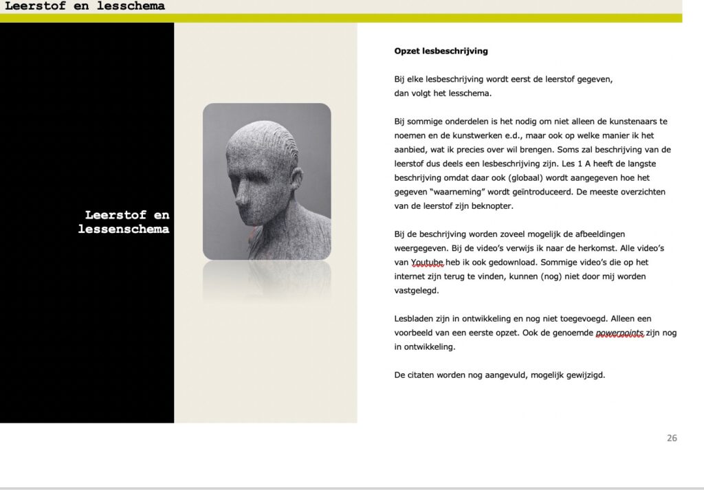 Hoewel de cursus al jaren geleden is ontworpen en gegeven, voelt hij nog steeds actueel. Er zijn verschillende nieuwe projecten voortgekomen uit deze cursus, zoals de workshop Pietà. De kwaliteit van de cursus werd onderstreept door het commentaar en de beoordeling door de docenten: Cijfer 9.