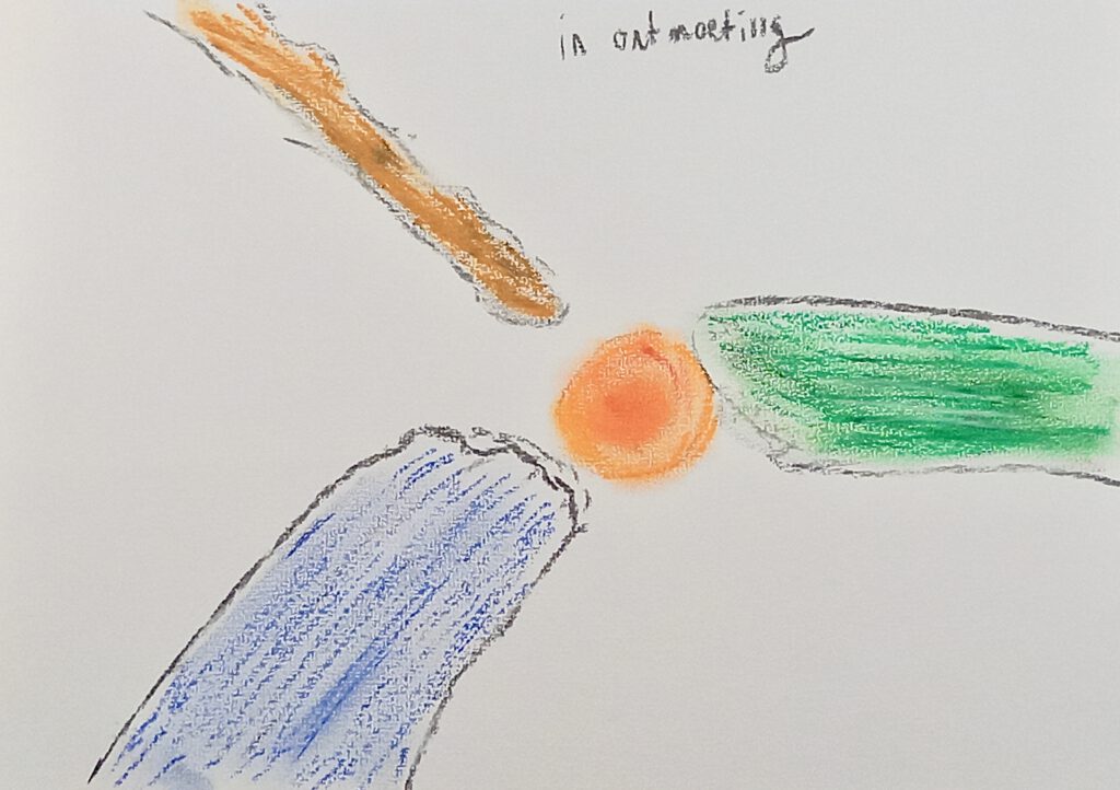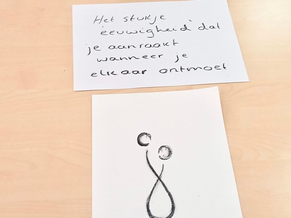 Vervolgens kregen de studenten de opdracht om in een tekening te verbeelden van voor hen de essentie is van een wezenlijke ontmoeting.