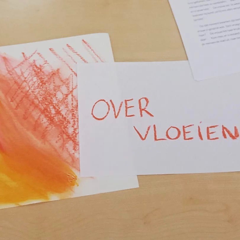 Ik vroeg hen in een zin of woord deze essentie op te schrijven en samen met de tekening te presenteren. In stilte werden de tekeningen bekeken.