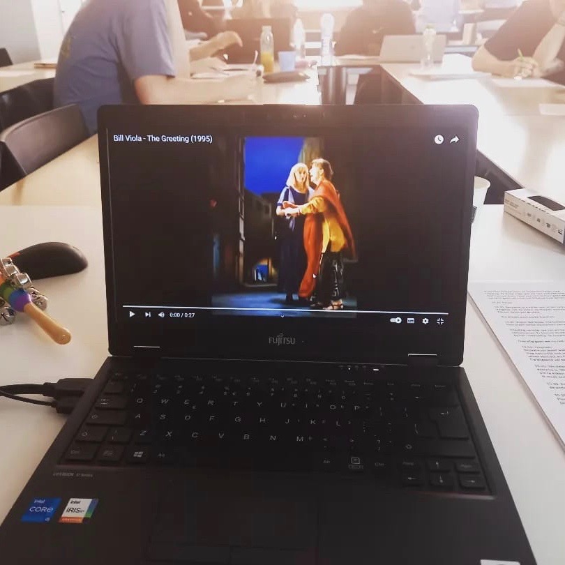 In stilte werd een fragment van de video The meeting van Bill Viola bekeken, waarbij de ontmoeting tussen de zwangere Maria en Elizabeth is verbeeld. Er werd in tweetallen gesproken over wat voor jou hoort bij een wezenlijke ontmoeting.